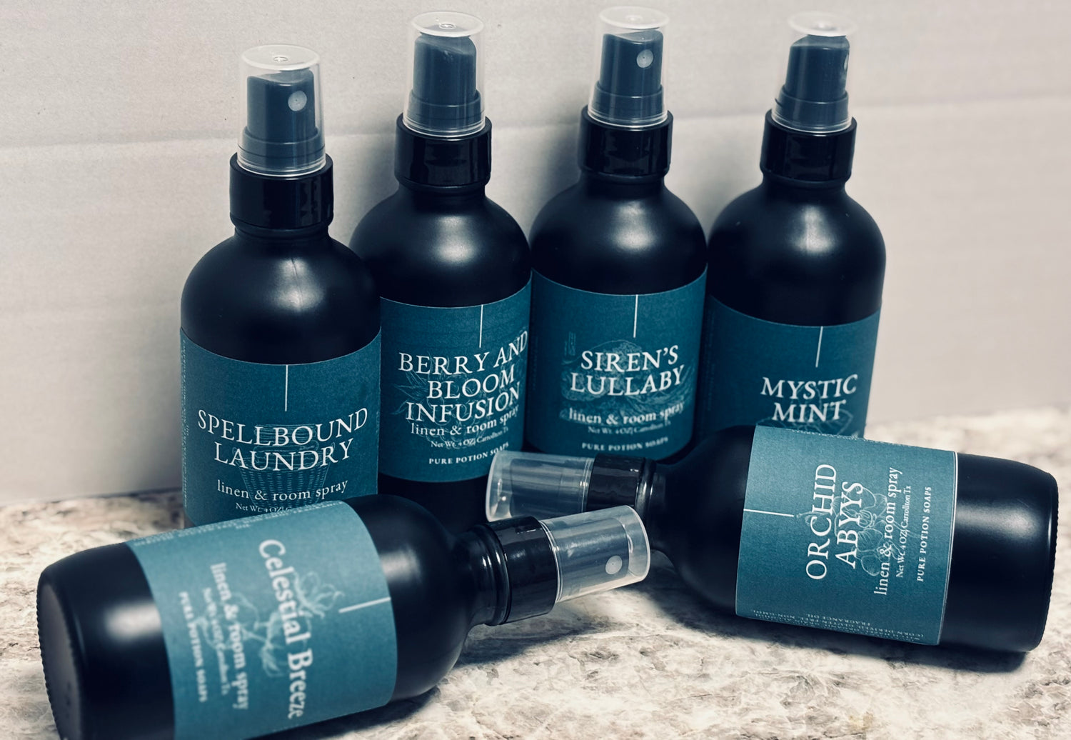 Transform any space with a single mist of our handcrafted potion sprays. Blended with wildcrafted witch hazel and infused with captivating fragrances or essential oils, each 4oz mist is designed to refresh and enchant. A spellbinding touch for your home, linens, or sacred spaces.