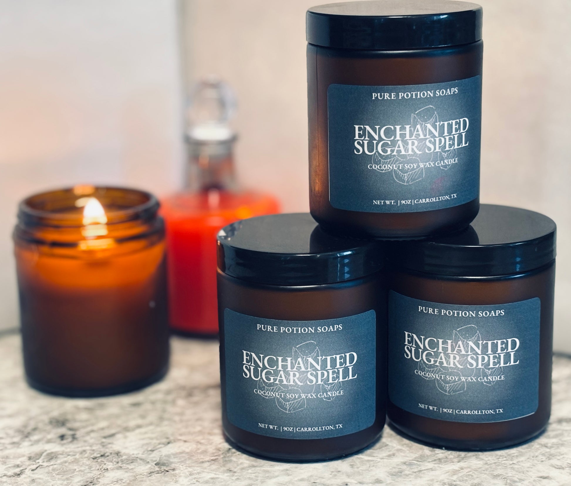 Hand-poured with the finest coconut soy wax and infused with enchanting aromas, each Pure Potion candle is a crafted spell of warmth and wonder. A crackling wood wick awakens the flame, casting a soft, flickering glow—like a charm woven into the night. Let its essence fill your space, summoning an aura of tranquility, mystery, and magic.